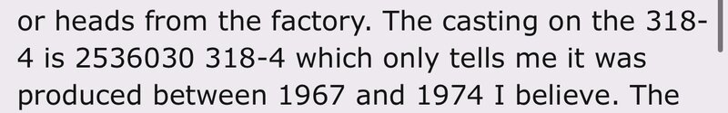The only good thing to come out of those builds, was that I then had a couple of sets of "hi-compression" 318 heads, that on a 340 were dynomite for a streeter; even with tiny stalls and hiway gears.