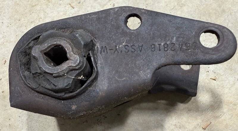 Could be, it definitely feels like steel and not rubber on the outside. I just can't for the life of me figure out why it's in the shape of a diamond and not a circle like the other 500 engine mounts I've installed over my career. A half inch bolt feels loose, which is what I found recommended in the Dart service manual. I am going to run to the hardware store later and get a couple bigger sizes in grade five and see what works best. Taking the engine mount off I mean, I need to replenish my shop bolt stores anyway