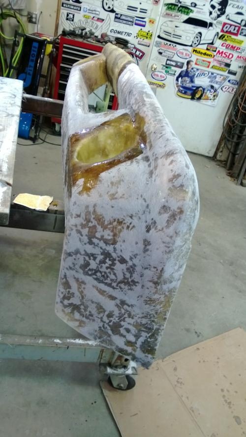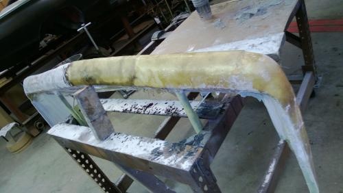 are you just wetting the matting and laying it up....doesn't look like you're rolling it once it's on the form! it would make for a flatter job with a lot less sanding if you're not rolling the matting...I've been making a hard cover for my 67 ute, this is how the back of the mould looks after rolling....