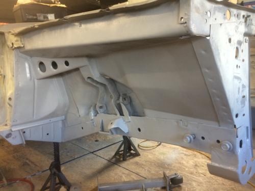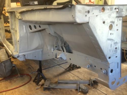 Ok it's scheduled for the body shop Wednesday!! I can't wait . They are going to give it back to me after they get the doors finished,quarters on and finished, trunk/quarter extensions in , roof finished, trunk pan in and the and engine bay finished and all in epoxy primer.. We finished off some of the engine bay/inner fenders yesterday and seam sealed and primed the frame connectors/torque boxes. They quoted me $1,500 for all that work... By far the cheapest for the best. We had our stocker painted and quarters put on ect by them before and the end price was $4,800 and it looks better then the past shop we used to use that quoted $11,000. I got quoted $4,500 for my car done from this shop. It just amazes me you can get better work for less money. When we get it back it won't go back to the body shop until we have the car rolling with all new suspension, mock up engine and trans, wheels and tires , and everything else that we might have a problem with after it is painted. I'm shooting for June/early July in paint.