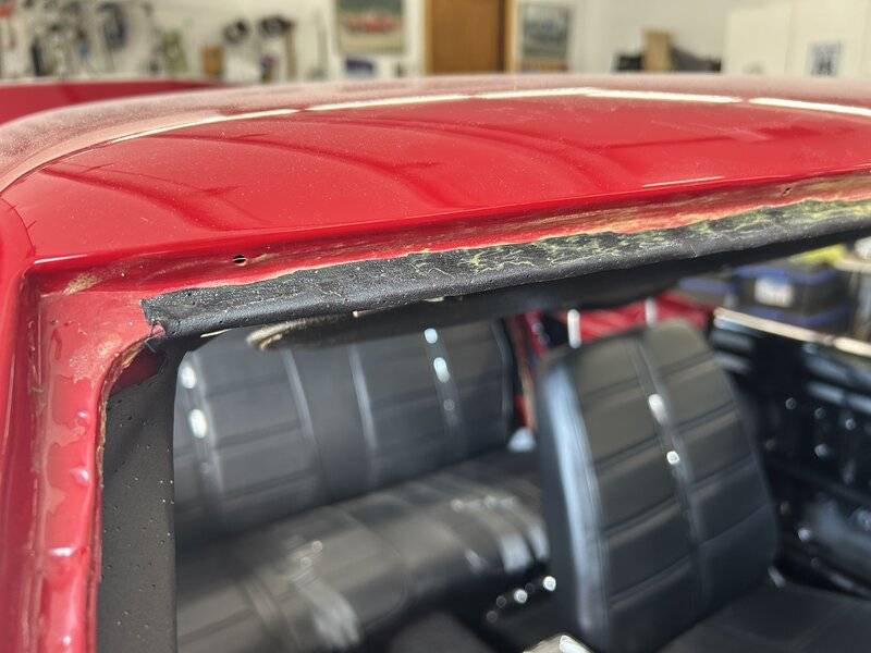 Had the headliner installed, but does not appear correct at the windshield gasket pinch areas. From my recollection of the original and factory drawing, it should not wrap around the pinch weld.