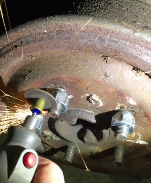 Ever heard of Rivet Nuts? What a cool design! and they come in big ½ diameter size even, which is what was used to create the lower attachment point for the seat belt retractors for the front seat. YouTube taught us how to make our own rivet nut installation tool for $8.
