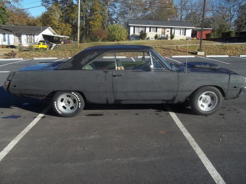 Last weekend I bought a 1965 Dart GT from a gentleman on here, the humblebee, so now I've got my '72 Dodge Dart for sale, it's a 318 auto car, original engine and transmission. I just rebuilt the whole front suspension with a PST poly kit, it included all the bushings, upper and lower ball joints, inner/outer tie rod ends (and I upgraded to the solid adjusters), and pitman arm. The stereo is a JVC cd player with auxillary input, (I keep my ipod in the car to keep from having to change cd's), and the wheels are Ansen Sprint aluminum slotted mags. The two front tires have less than 250 miles on them, but one of the rear tires is worn pretty good and needs replaced. The car runs great, has power steering and manual brakes with 10" drums. The engine ticks for about five seconds when you crank it up and then quits, I believe it's a lifter that leaks down. The carburetor also needs rebuilt, I bought it on here used and just put it on, and there's a slight flat spot when you hit the gas. There is a leak in the power steering, I've had to add a some fluid every couple weeks. There is a little rust in the quarter panels behind the rear wheels, but no rust on the fenders, floor pans, or trunk. The car needs carpet and a front seat cover (or I know a guy I can send you to who has correct bucket seats he said he'd take $250 for). The car was oringally hunter green, but it's currently primer black. I'm asking $3000 OBO, or I'll do partial trades for gold, silver, guns, or a full four speed setup for my '65 dart. Car is located in Walhalla, SC, in the NW corner of SC. I have a clear title for the car in my name.