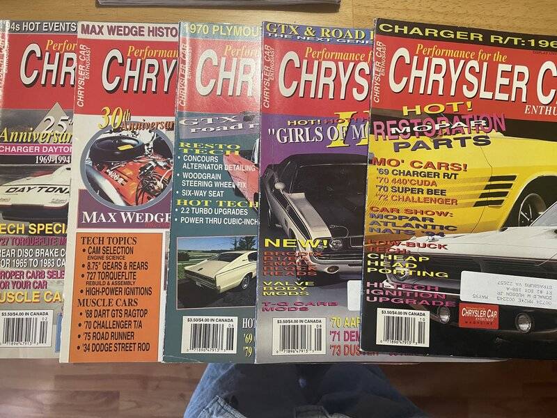 Mar 30, 2023 #1 65 Dartman 1 of None 65 Dart Sedan Delivery FABO Gold Member Joined Sep 24, 2006 Messages 14,602 Reaction score 5,518 Location Strasburg, VA Rating - 100% 194 0 0 Contact seller Here are the 1994 issues of the MoPerformance successor Performance for tge Chrysler Car Enthusiast magazine - February, April, June, August and October. $10 plus media mail shipping from 22657