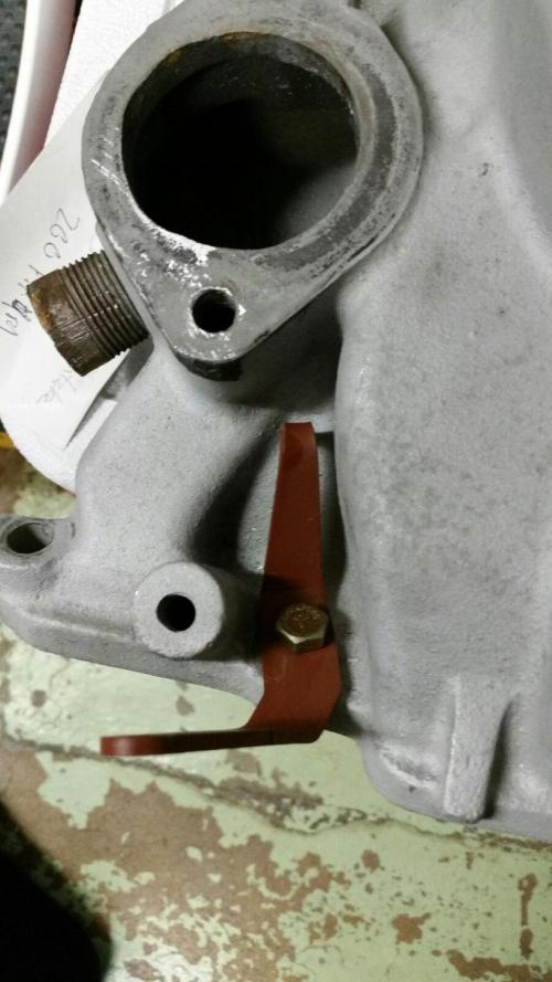 Nope. Te large hole is a GM thing. THey used a bushing for their throttle rod. Your kickdown is all wrong. It should look something like this. I can't guarantee these photos are correct. The pivot in the back goes on the post on the throttle bracket. THat transfers the horizontal movement to vertical that goes down behind the cylinder head.