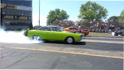 the 71 Duster at 2900 lbs with a 10.5 to 1 compression motor...mopar 590 cam...eddy ported heads...eddy victor..holley carb...904...TA Converter...4.56 gears..10 x 29 tires..