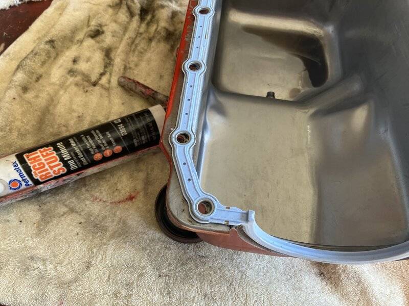 EDIT. Now I remember. Look at the right side of the photo, the front of the pan. See the "steps" at the cutout where it meets the pan rail? That is an LA pan and the Magnum gasket will not seal there--without silicone