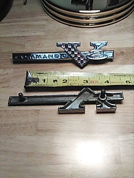 Yes those are the emblems. I bought that fender and was told it was from a Commando car as the guy did have those emblems. But now I'm thinking the fender only had a V8 emblem on it.