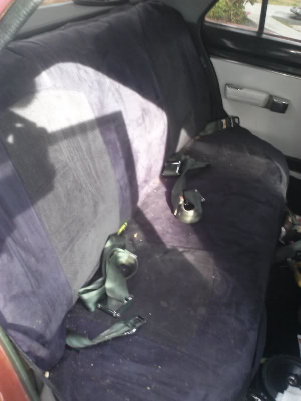 If you've seen any of my interior restoration sections, you will already know, but I then spry glued a car set cover to the back seat, which looks a lot better than a ripped to hell green floral seat.