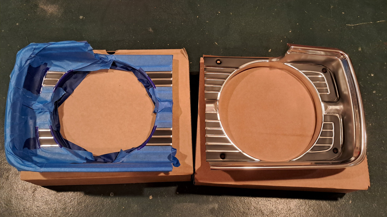 Yesterday I unboxed the new grill and headlight bezels. The new parts aren't painted correctly for a GT or GTS. Those models have some extra blackout done that the lower trim level cars don't have. I get why the reproduction parts were done that way. They only have to stock 1 part instead of 2. It still sucks that I had to paint brand new parts. Oh well. It turned out ok and the grill fits pretty good. The front end is starting to take shape.