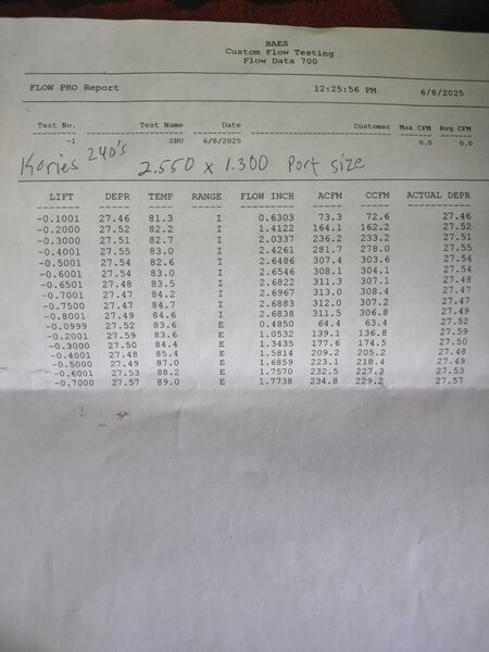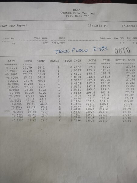 Finally, I have some before and after flow bench tests of ootb trickflow 240s and my ported 240s.