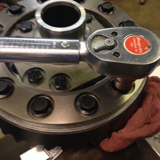 Installed the ring gear on the differential, These are left handed threads-Torque to 55 ft lbs: