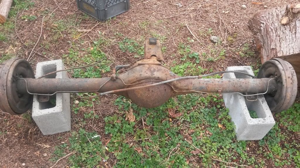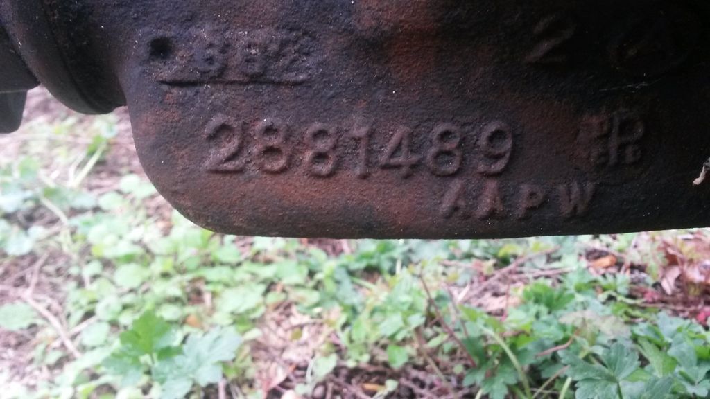 8 3/4 rear end out of a A-body. Stock with Small bolt pattern axles 489 case with what I believe to be 3.23 open diff gears. The rear end has the 10" drum brakes and the shock mounting plates. I bought this for a project but sadly the car I was building was totaled.