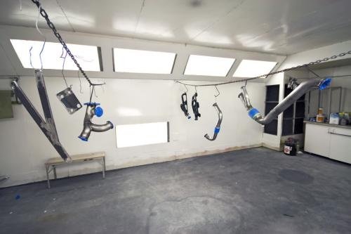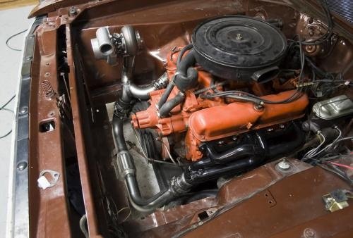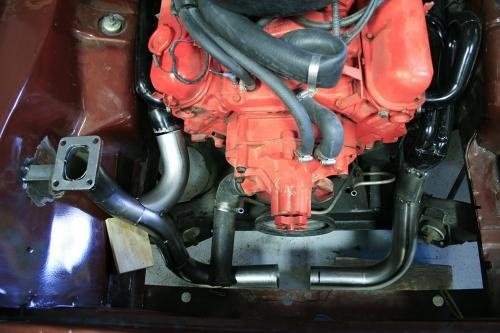 So here's the answer to your prayers. This sale is for the hot (exhaust side) piping needed to fit a single MasterPower T70 .68 A/R turbocharger on the passenger's side of your A-Body. It uses a pair of Summit Shorty headers installed backward to route the exhaust to the front right corner. NOTE: THIS IS FOR THE EXHAUST PIPING ONLY; NO TURBO, NO CARB, NO WASTEGATE, NO CARB HAT, NOTHING ELSE. Just the hot piping, headers, turbo support bracket, v-bands and the intake air filter. But everything else is readily available for simple bolt-on. This piping is the hard part. Note also: This piping terminates under the car at the bottom of the engine compartment. It does not include the exhaust piping and mufflers from the engine compartment to the rear of the car.