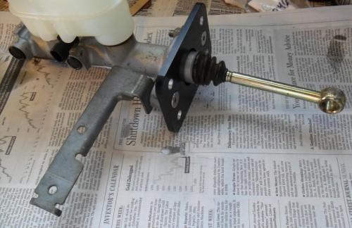 For my manual brake car, I was concerned. Below is a photo showing the pedal will be in the same place in my 64 Valiant, when using the Breeze ABS MC and adapter plate. The 2nd photo shows the final assembly, stealing the bellows from the single-pot MC (super-glued), and an MC bracket from an Intrepid that is useful for securing parts (adj proportioning valve, etc).