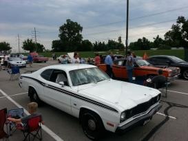 I went to the Fold of Honnor/Patriots Cruise night at Jenks Riverwalk last night and took the Duster. The weekly scheduled "feature" car club was Pontiac, but its always open to all makes and models. Had three A bodies, couple new Challengers and one sweet 6 pack Road Runner.