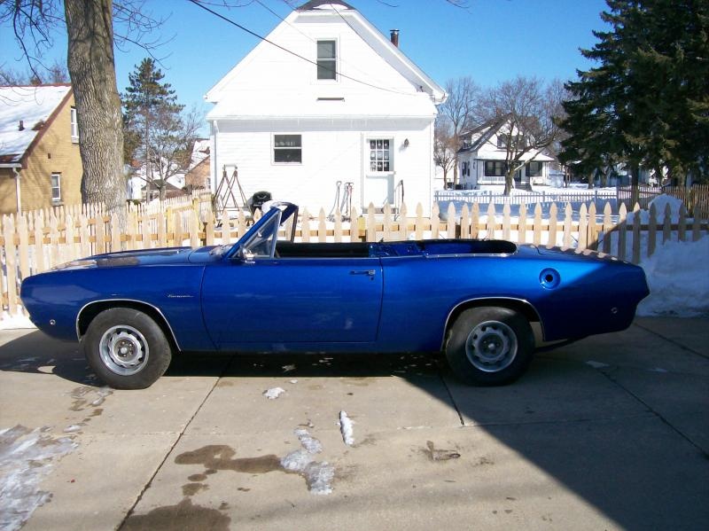 Found this 1968 Barracuda convertible about 8 years ago. It's a rust free, slant 6, automatic car with 75% original paint remaining. Since then, I've put 4 wheel disc brakes, sub-frame connectors, chassis stiffening kit, Koni shocks, front and rear sway bars, bigger torsion bars, stiffer rear springs, 4-point roll bar, new fabric top, big bolt pattern wheels, 8 3/4 rear end with 3.23 suregrip, a 2000 Dodge Durango 5.9 Magnum with EFI, 727 with Transgo 2 shift kit and a slightly higher stall converter.