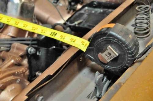 cowl to the air cleaner stud is. Or from the back of the hood which ever is easier for you to