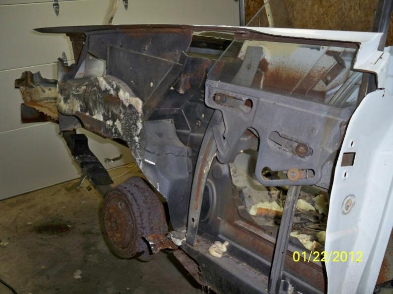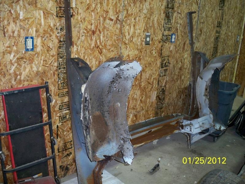 Well Dustin and myself and a saws all air chisel and spot weld cutter cut this car apart in less than a week, all that is left to remove is the windshield frame. There is a little rust in the wheelhouse cap.Now we will do the prep work to all of the pieses cleaning and painting. It went a lot faster than I thought it would.we put this car in our new garage it is so much better good lighting and heat. i'm injoying this working with my son Dustin , he is taking auto body in high school. Well it is almost time to get around for work.