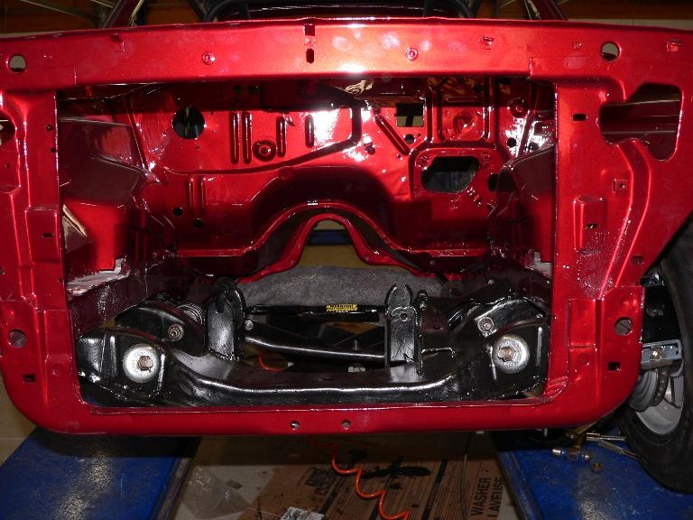 They have a custom built system for these cars , but it looks like the hoses will hit the valve cover where the hoses come thru the firewall where the heater blower was .