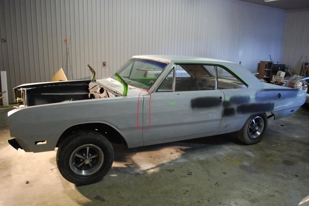 I have a big problem with my drivers door, I can't seem to get it lined up right. First thing I noticed it was sagging so I bought a set of pins and bushings. Replaced both top and bottom and tried to align. I can get the in and out on the door but it still sags in the front mainly (closest to the fender). Fender is off as well so I can adjust easily.Whats going on here? I need to spray the last coats of high build to do the final blocking in 400, but I need this right to have sharp lined up body lines. Heres a pic to show you what I have thus far.