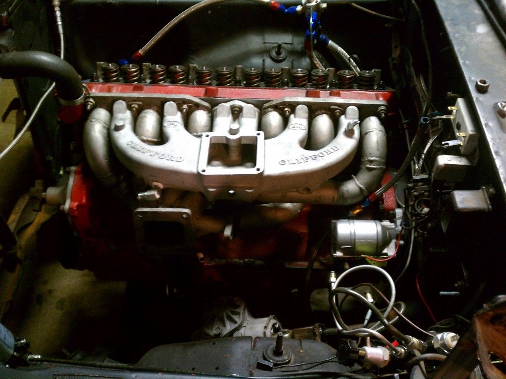 Clifford 4 barrel intake that's been ported and polished. It has the water passages under the carb aera ill through in the hoses I have and used for installing it or you can plug them off