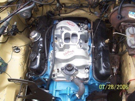 Hers the 318 that my dad did back in 2002 and is the same motor in my avitar (2007) only the manifolds are silver, I dont think the black stuck to well is why he painted them silver. The heads look ok yet but the front of the heads/T cover/oil pan have flacked badly. Basically anything that got oil weepage flacked. She sure looked good that day though. I want it to stay that way this time around.