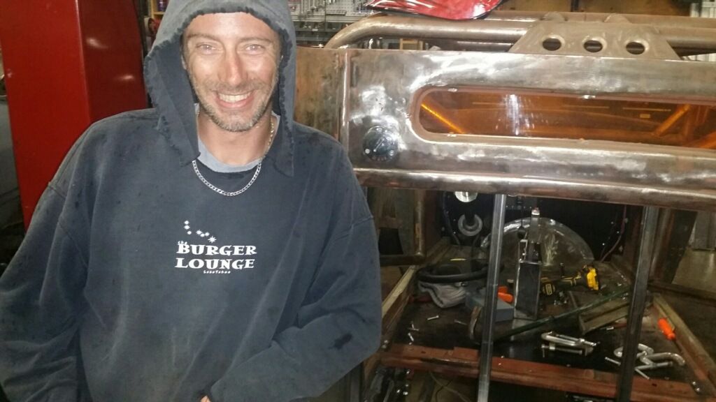 it dont look like a lot of work but it was. We are gonna cut the body into chunks and make the entire body removable with quick release pins, so none of the bracing can connect to the body. It has flat stock that follows the curves of the body and is only welded to the frame. The trick is getting the bracing super tight to the body yet still letting the body come off.