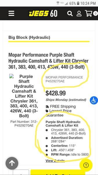 My Father had a built 440, but the shop that built it didn't keep any records and could only tell me it won't run on pump gas and will need pistons changed to do so. I found a manilla folder with the following receipts inside of it. I'm not trying to drive at 5000 RPM going 50 mph.
