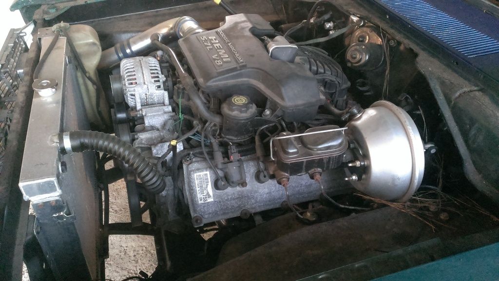 The swap is a complete swap from a 2004 Hemi Ram, including the 545. Everything (gauges and all) are there from the ram. It cranks, idles, and will creep around in gear under it's own idle power, but will not rev up. It has a cable ran from the stock gas pedal to the box that was under the fuse box for the hemi. I read that I couldn't re-use this box on the car?? Is that so? Or, can anyone give me any tips or anything to troubleshoot it some?