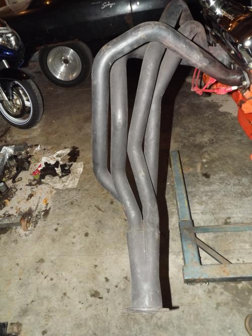 Big Block A body fenderwell exit Hooker headers. The guy I got them from said the driver side collector flange drug coming off the trailer and tweaked up the end of the header. Says it has happened to him before and you can fix with a come along and floor jack? $225.00. Located in Missouri. This is for headers only. They are only bolted on 440 for s place to store them...LOL. I really dont want to ship these. Prefer local pick up. PM me if interested