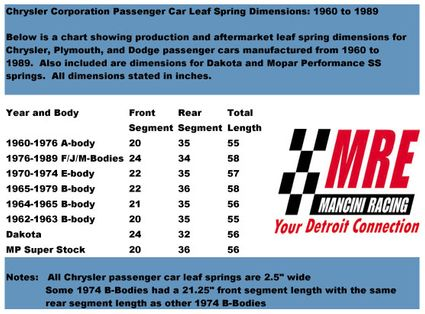 The springs are the same from 63-76. Might be for 60-76, I'm not sure. Course the 62 Dart may be an exception, since it's a B body.Learning moment maybe?? If these work for cars previous to '67, then why would they not list them for the earlier cars?? Just curious.View attachment 1716477986