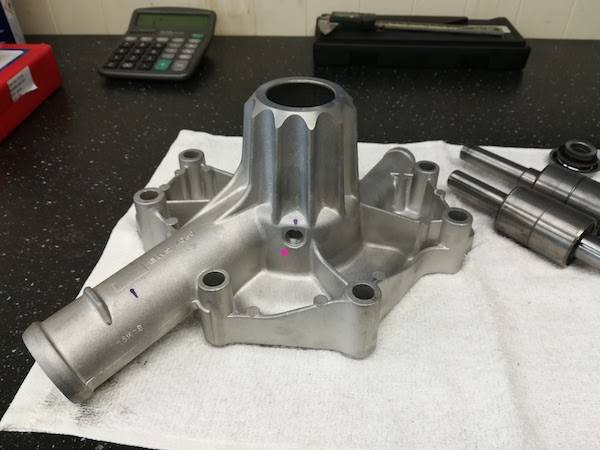 I would like to show how I made myself a short nose water pump. Having issues with water pump to radiator clearance and not being able to move the radiator is the reason why I did this. Doing this made me able to get the water pump 3/4" shorter.