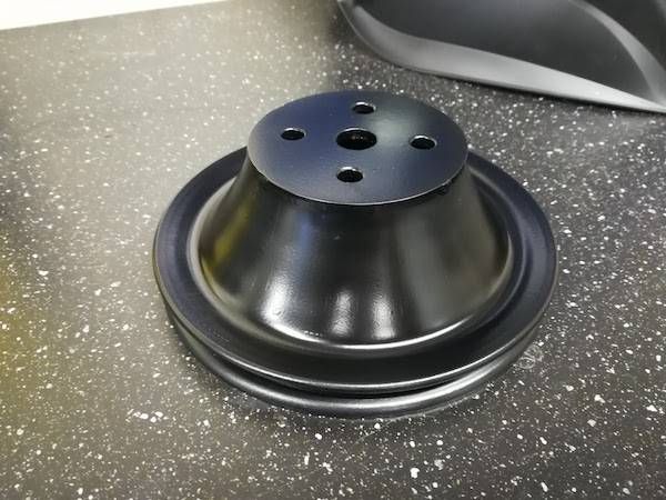 Last step was to shorten the water pump pulley to the correct depth. I made a new flange and welded it at the correct depth on the pulley.