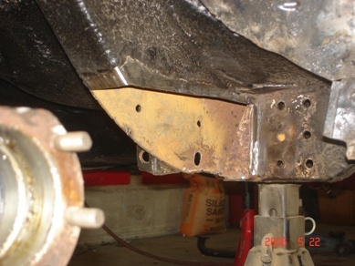 On the back side of the new spring box where it contacts the old existing frame I drilled 5 holes so I could plug weld it as well for strength.