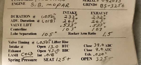 I’d go with the cam AJ runs. 10.5-1 is a bit high for 91. Not that I’d be worried now…. Though I’d watch the cylinder pressure.