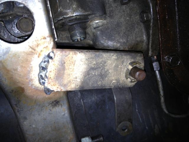 On my car the torque shaft bracket is welded to the transmission cross member mount (see pictures). I'd like to know (possibly see a picture if possible) how the bracket is supposed to be mounted so I can correct it.