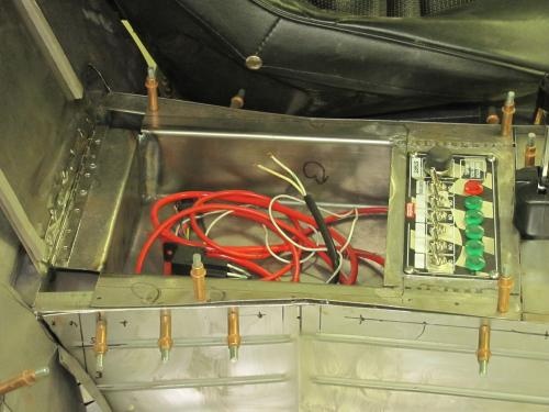 The black thing behind the shifter is the turn signal assembly comes complete with everything needed to work except for a flasher . Signal Stat part for a truck , dimmer switch button on top , and has 4 way flashers also . The switch panel is another Ebay buy , has starter button , ignition switch , and 5 other togle switches for 2 fans ,fuel pump , running lights and head lights . Bent up a 20 gauge box with lid to house relays and fuse boxes when the car gets wired up ..... Used short back seats for the old style look , also put pic of tac in this post missed it in last one .View attachment cuda-afx 018.jpg