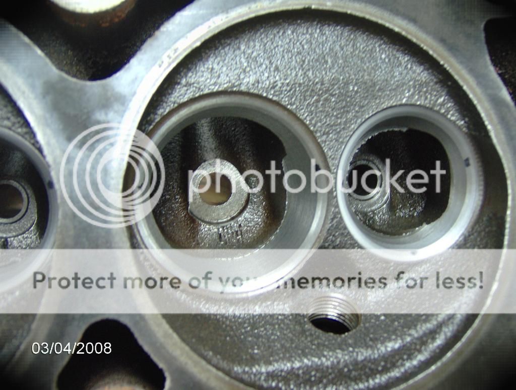 Looks like they did a nice deep 60 degree bowl cut. Now you need to "blend" the bowls, and narrow the guide bosses. You want a pretty smooth surface on the walls, and a nice smooth radius on the short side. A flame tip carbide burr followed by 80 grit tootsie rolls should do the trick. The long style burrs work the best. Put a couple layers of heat shrink tube on the shaft of the burr so you don't nick the valve seats.