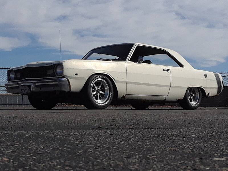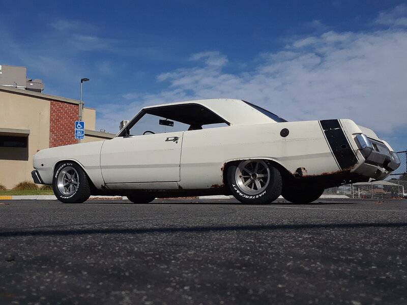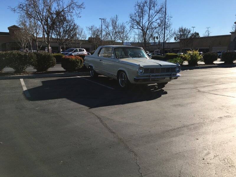 Looks goodNot as nice as a lot your cars, but here's my '66 Valiant. I bought a set of 14x4.5" steelies and some Toyo 185/75s to put on them. The tires showed up and I realized they were gonna be way too tall for the fronts. Decided to keep the 13s up front and put a new pair of Uniroyal 155/80s on those. Scored a nice set of dog dish from a fellow boardmember to class things up a bit. Pretty happy with the stance, but I think want to drop the whole car an inch or so.