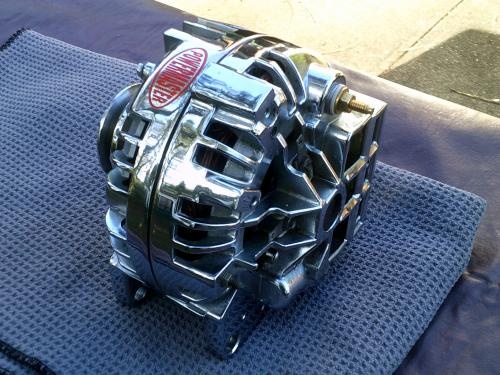 Chrome Powermaster alternator. 75 amp early Chrysler square back unit with dual pulley. Model number 17509. Have had about 4yrs. & works great. Just removed from my 65 Barracuda as I'm upgrading all electrical for new motor. Excellent condition with normal wear. Not new but ya wouldn't know. She still shines great. Get it in time for Christmas with usual oldschool savings as these puppy's run about $175 new. Thanks for interest and will calculate shipping if interested.