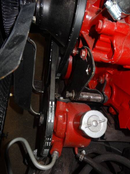 They had to move the TDC marks when they moved the lower radiator hose outlet on the two different water pumps... Then use the 64 - 69 style alternator brackets and power steering brackets with the single groove alternator...