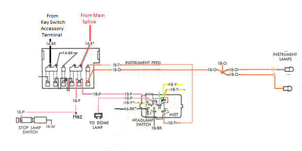 So the dome light wiring junctions are different in '68, the front parking light wire color changes, and the body wiring connector changes from 6 to 8 cavities. Bulkhead connector as you prob know is rearrenged in '68.