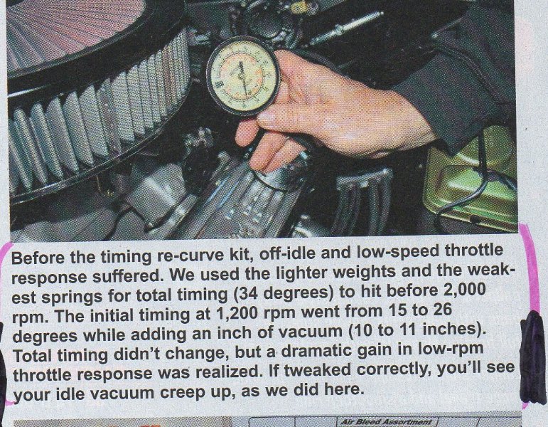 So... a new question would be now is there anyone that makes bushings for the MSD to accomodate smaller advance curves? MSD's smallest is 18 degrees in the kit. Motor was dyno'ed at 35 degrees so where ever I land with initial, I will have to adjust range to work.