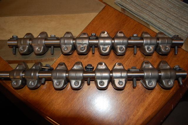 Have for sale a set of small block rocker arms and shafts that are in excellent shape and very very clean. These were off of an engine that appeared to have low miles and I believe these are the "heavy duty" Mopar replacements with the thicker pushrod socket cross sections. The valve stem contact areas are nice and smooth as well.