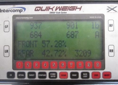 The first scale I drove on showed the car at 3750lbs. In disbelief, I drove over to a second scale which showed it at 3700lbs. Both the above weights are without driver or passengers.