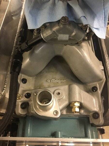 Ill be running -8 hoses from the rear of the intake face to the two 3/8" ports....takes hot water from the rear of the heads for extra cooling.