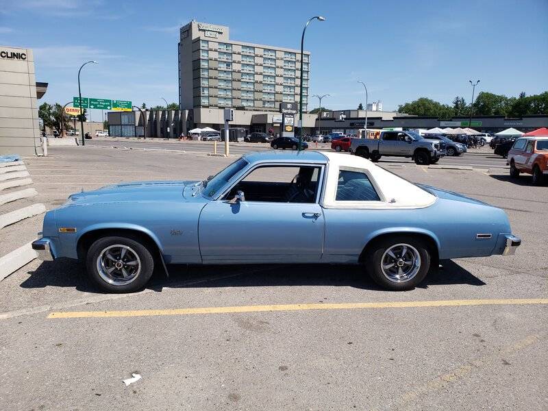 Was a 434, with a 500cfm 2bbl, air cleaner was opened up underneath where it couldn't be seen , 4sp trans with a bunch of gear in the back. 2 1/2 ram horn exhaust, nice pipes dumping underneath.