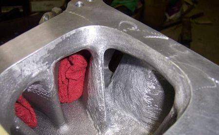 Some guys are curious on time took so I worked for one hour and got the four ports shown above roughed in. Gasket match and most of the four runners at least 3/4 way to the plenum. The corners of these runners really need pushed over quite a bit so that was a big part of the time.