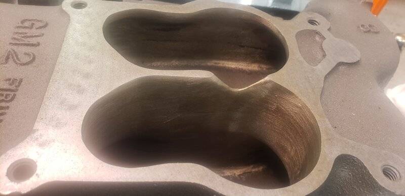 Some guys are curious on time took so I worked for one hour and got the four ports shown above roughed in. Gasket match and most of the four runners at least 3/4 way to the plenum. The corners of these runners really need pushed over quite a bit so that was a big part of the time. View attachment 1715674787View attachment 1715674788